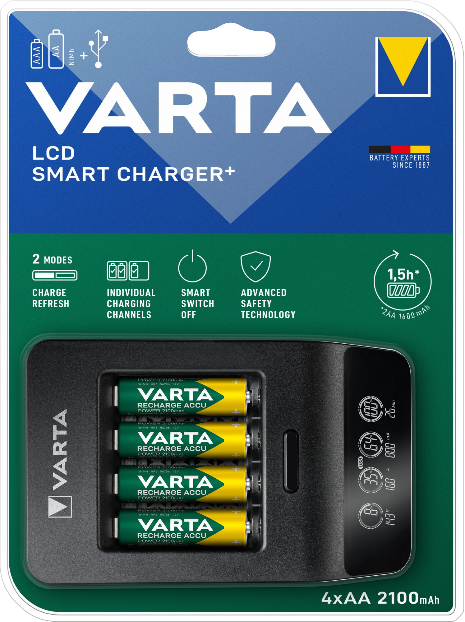 VARTA LCD Smart töltő + 4db AA 2100 mAh akkumulátor