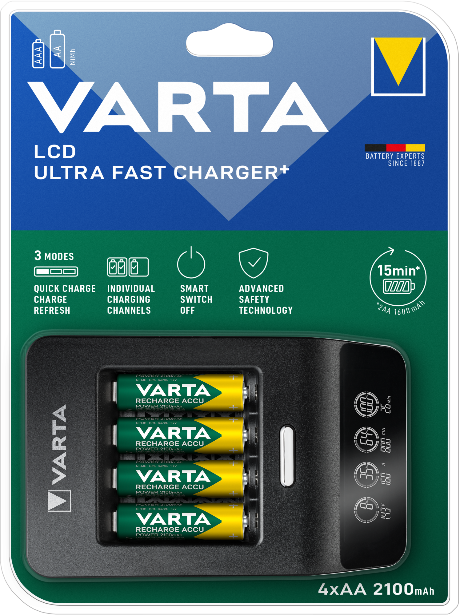 VARTA "Ultra Fast" 15 perces gyorstöltő + 4db AA 2100 mAh akkumulátor